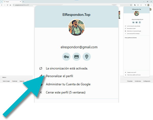 - Navega a: Google Chrome → Perfil → [1] Botón de Perfil