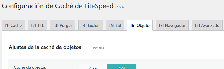 - Navega a: LiteSpeed Cache → Cache → [6] Objeto