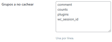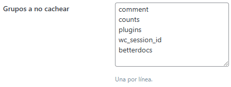 - En «Grupos a no cachear», agrega: